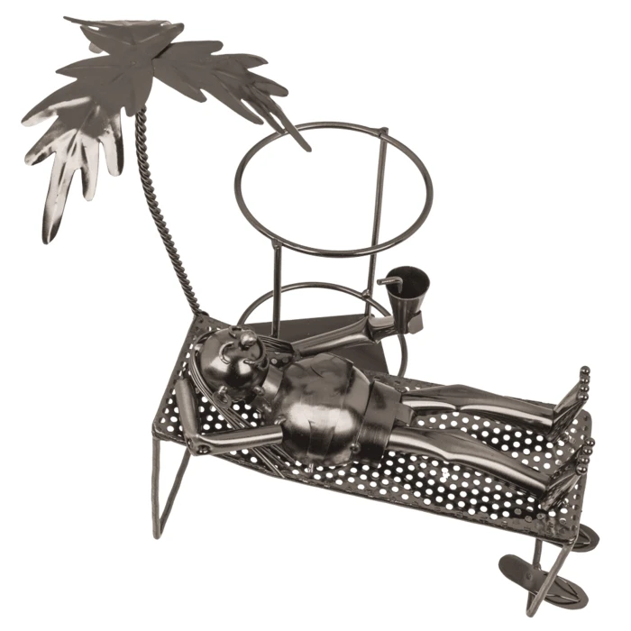 Ten wyjątkowy stojak na butelkę wina w formie leżącej postaci na plażowym leżaku to idealne połączenie funkcjonalności, humoru i estetyki. To nie tylko praktyczny gadżet, który stabilnie utrzyma butelkę wina, ale także oryginalna dekoracja, która wzbudza uśmiech i dodaje wnętrzu wyjątkowego klimatu.