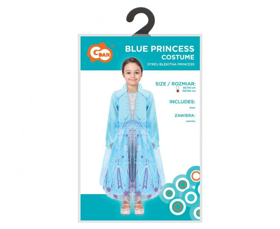 Strój Błękitna Księżniczka Przebranie zimowa królewna niebieska sukienka 110-125 cm