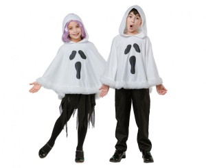 Strój Duszka dla dzieci – ponczo z kapturem, uniwersalny, biały