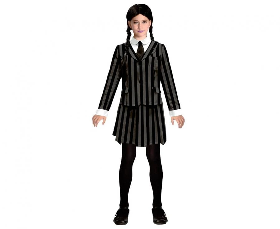 Strój Gotycka Uczennica WEDNESDAY żakiet Przebranie Halloween rozm 120/130 cm