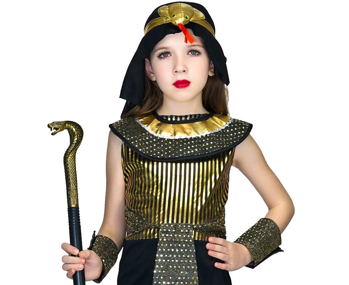 Strój egipskiej królowej to nie tylko przebranie, ale sposób na rozwijanie wyobraźni i zabawę w świecie historii. Każda dziewczynka w tym kostiumie poczuje się wyjątkowo – niczym prawdziwa Kleopatra!