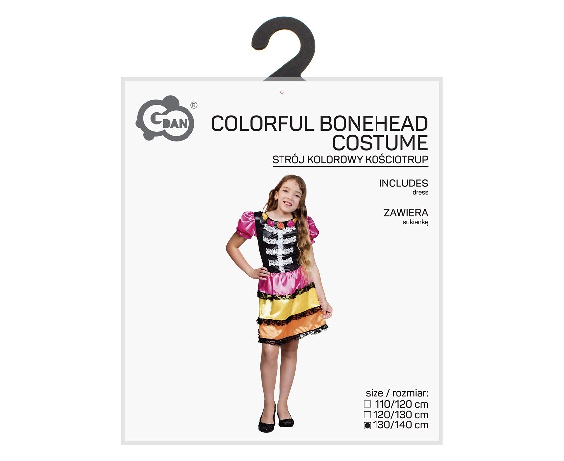 Strój Kolorowy Kościotrup dla dziewczynki – sukienka 130/140 cm