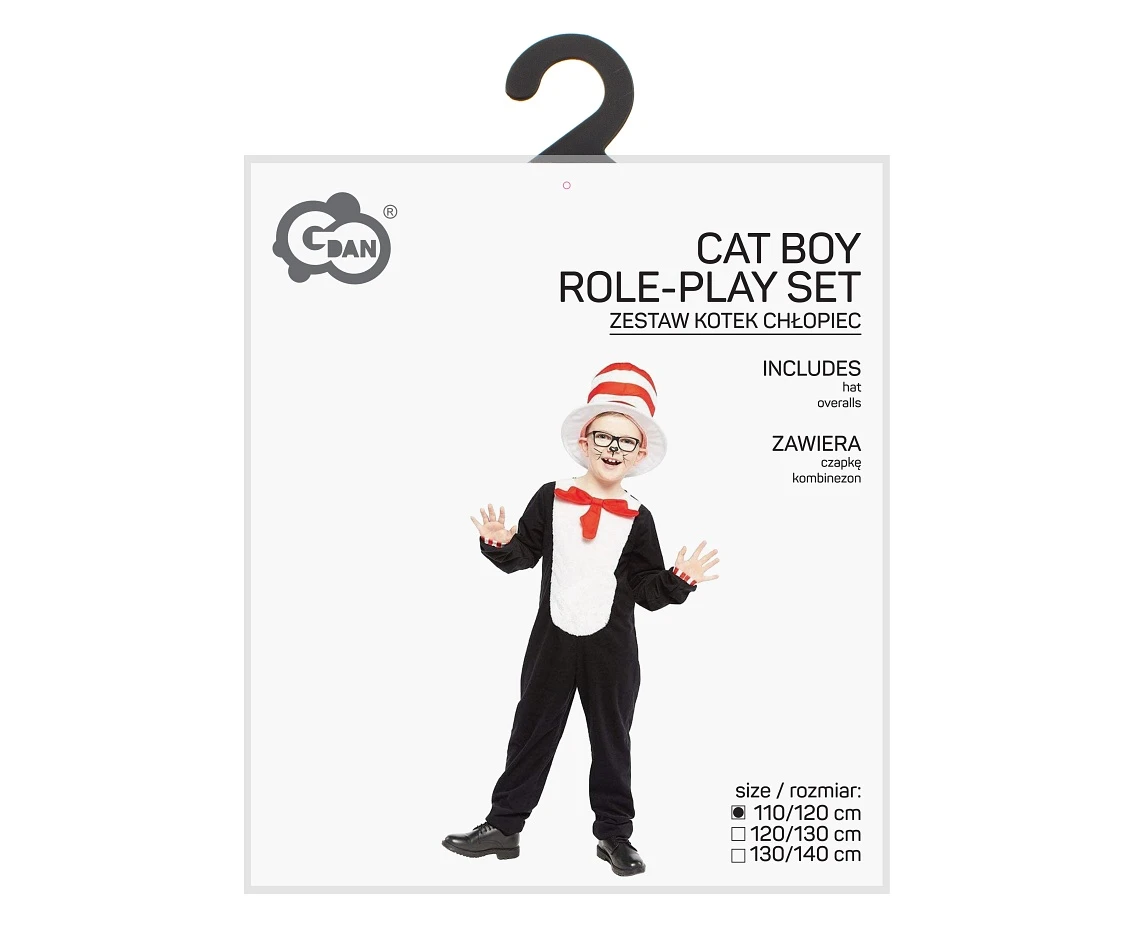 Zestaw zawiera czapkę i kombinezon w kolorach czarnym, białym i czerwonym, które tworzą kompletny i efektowny strój kota. Wygodny, lekki materiał gwarantuje komfort noszenia oraz swobodę ruchów, co pozwala dziecku bawić się przez długi czas bez ograniczeń.