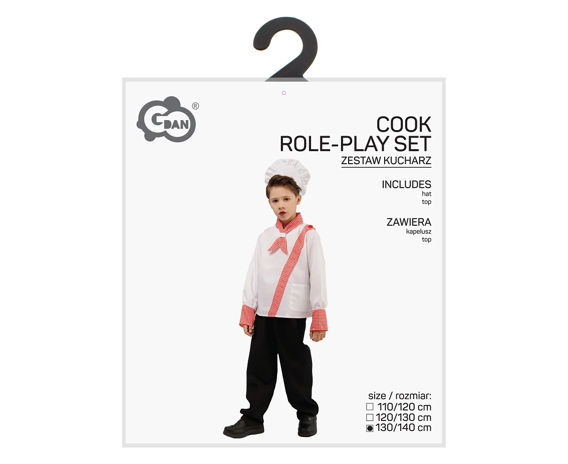 Zestaw zawiera kapelusz i top, które tworzą kompletny i gotowy do użycia strój kucharza. Klasyczny biały kolor w połączeniu z eleganckim krojem nadaje kostiumowi autentyczny charakter, pozwalając dziecku poczuć się jak prawdziwy mistrz kuchni. Wykonany z lekkich i przewiewnych materiałów, zapewnia komfort oraz swobodę ruchów przez cały czas zabawy.