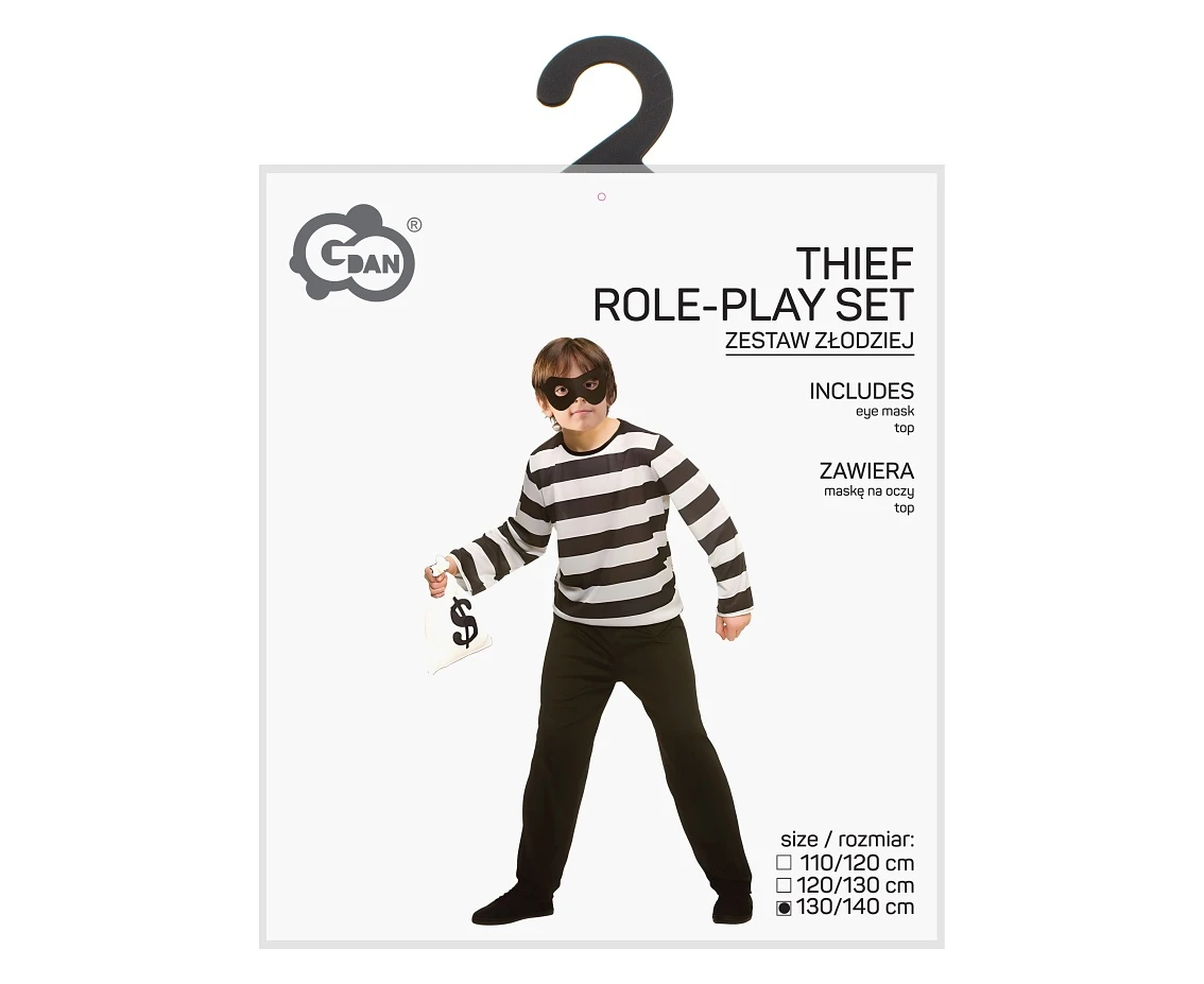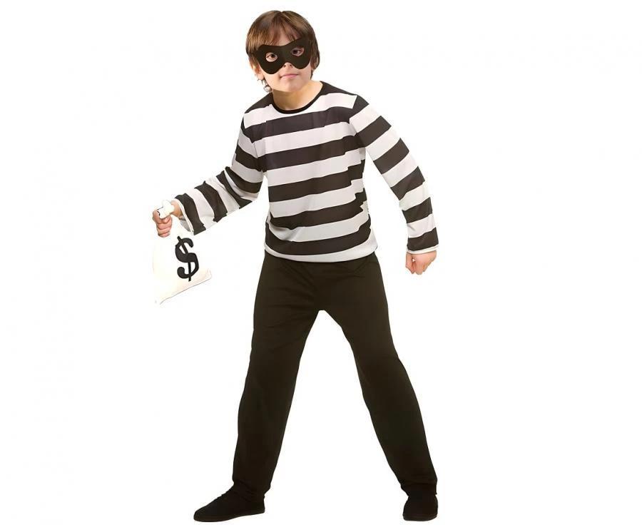 Strój Złodzieja dla chłopca 130/140 cm – czarno-białe przebranie