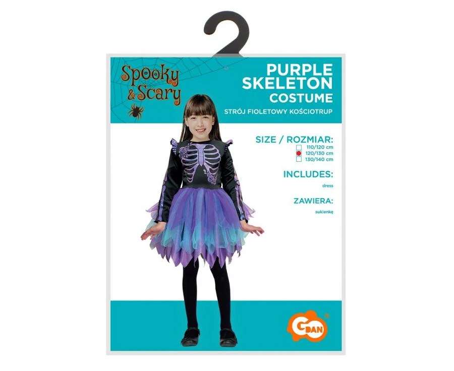 Strój dla dzieci Fioletowy Kościotrup Przebranie Kostium rozm. 120/130 cm