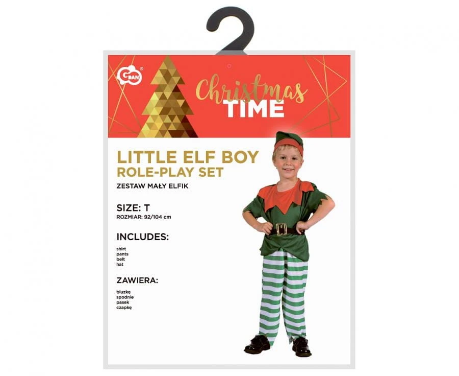 Zestaw dziecięcy Mały Elfik to kompletny kostium, który zawiera bluzkę, spodnie, pasek oraz czapkę — wszystko, czego potrzebuje maluch, by stać się uroczym elfem na każdej imprezie.