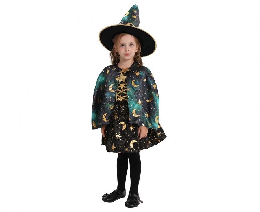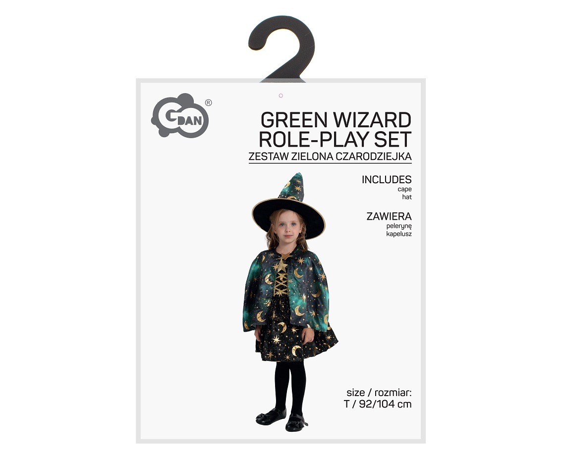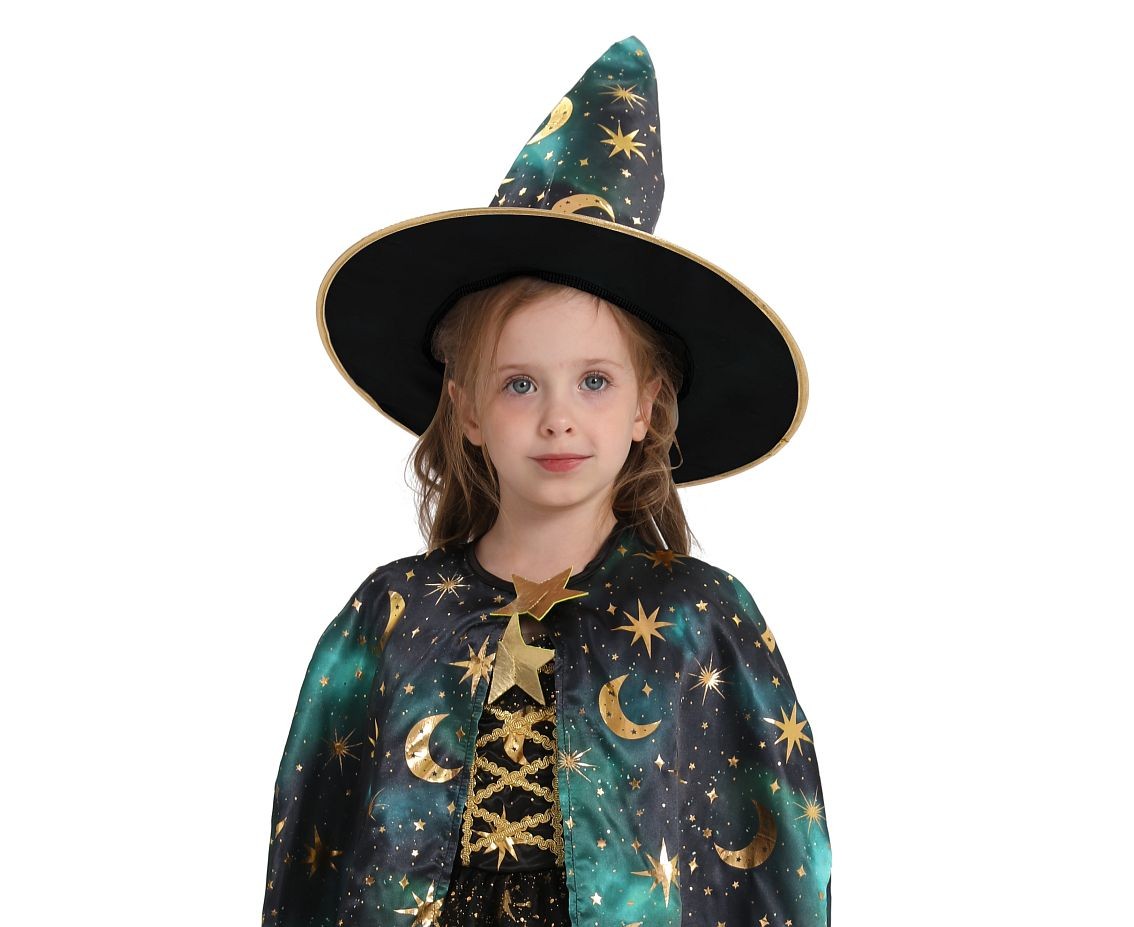 Strój zielonej czarodziejki dla dzieci 92/104 cm – peleryna i kapelusz