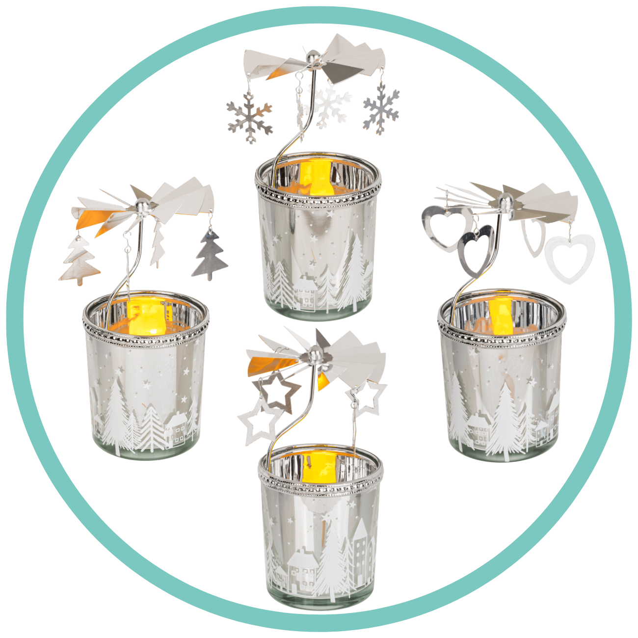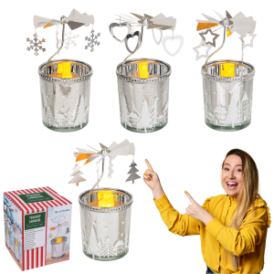 - Świąteczna magia: Karuzela z motywami bożonarodzeniowymi, obracająca się pod wpływem ciepła świecy.