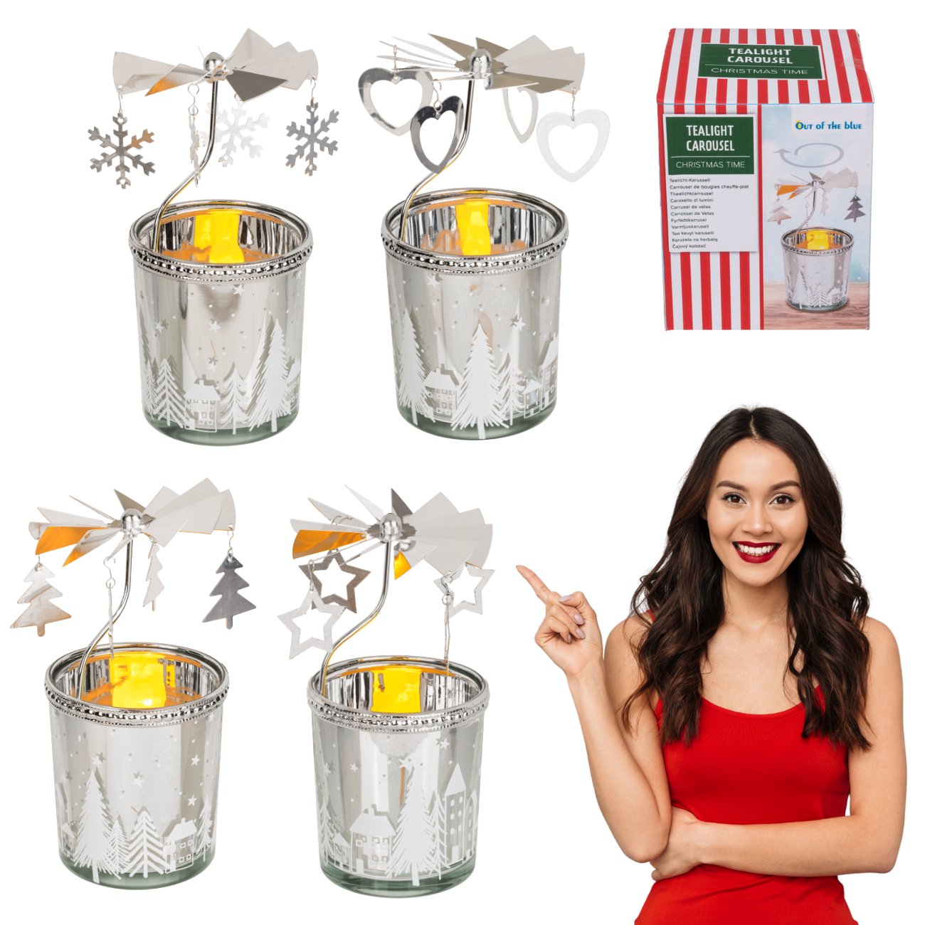Świąteczna karuzela na podgrzewacze to wyjątkowa dekoracja, która wprowadzi do Twojego wnętrza ciepły i nastrojowy klimat świąt. Wystarczy zapalić tealight, aby karuzela zaczęła się obracać, tworząc magiczny efekt świetlny. Dzięki subtelnym świątecznym motywom, taka karuzela stanie się ozdobą każdego domu w zimowe wieczory. Produkt dostępny w czterech różnych wzorach, wysyłanych losowo – cena dotyczy jednej sztuki.