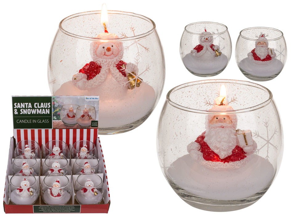 Świeca świąteczna w szkle Mikołaj lub Bałwanek