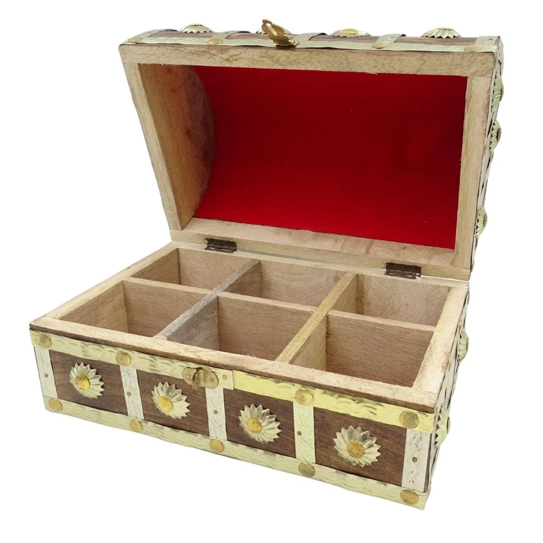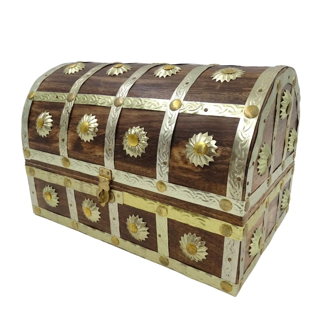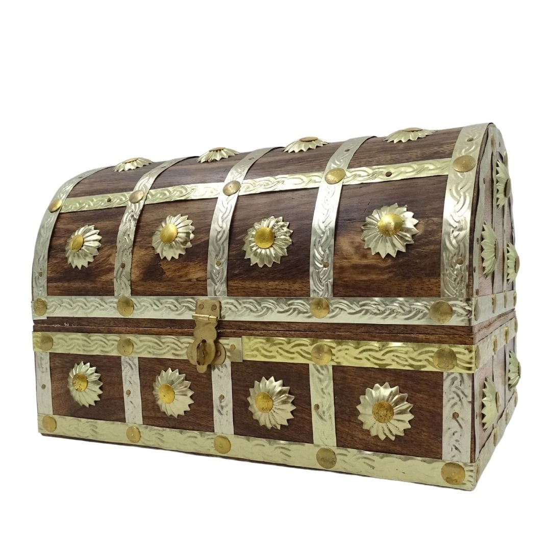 Szkatułka drewniana metalowymi zdobieniami Pudełko