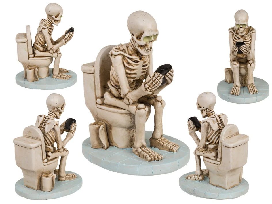 Szkielet na Kiblu Figurka śmieszna Kościotrup z telefonem w toalecie WC