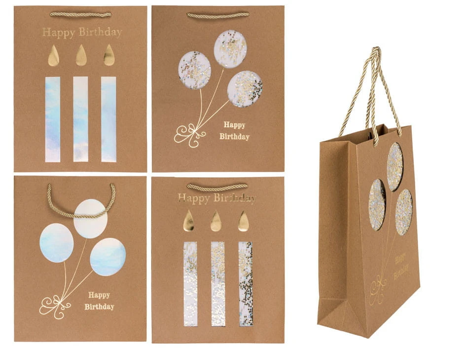 TORBA PREZENOWA kraftowa urodziny 26x10x32 cm mix