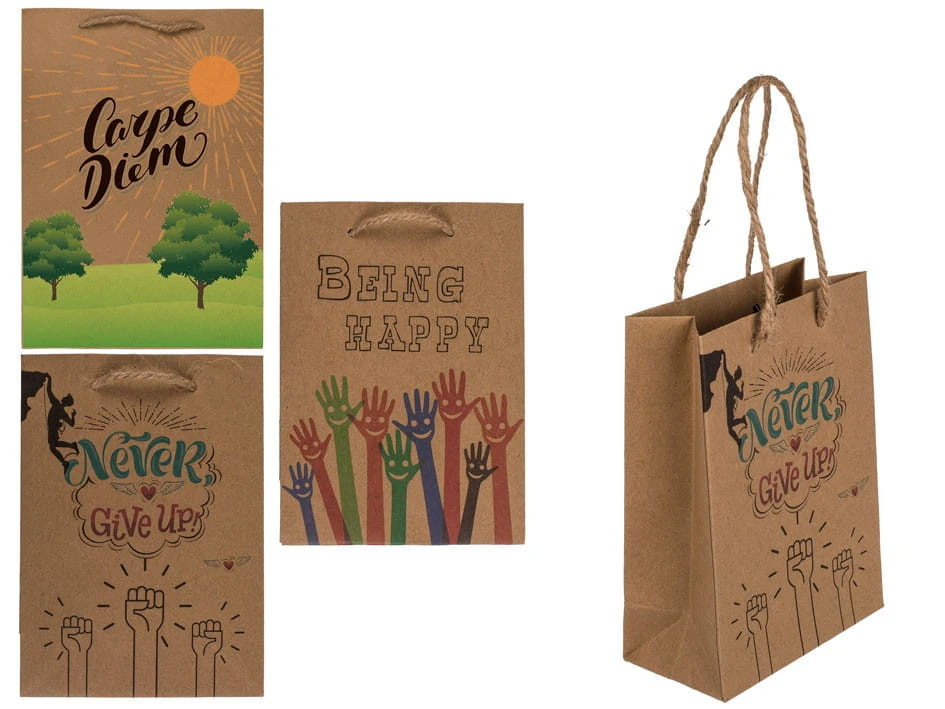 TORBA PREZENTOWA kraftowa slogany 11,5x6x16 cm MIX