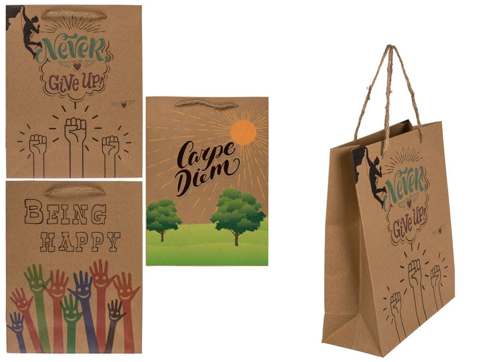 TORBA PREZENTOWA kraftowa slogany 18x8x23 cm mix
