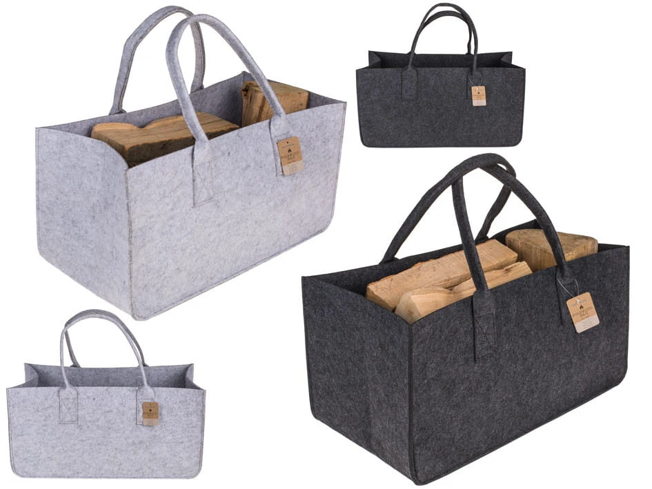 Torba służąca do komfortowego i efektownego przetrzymywania drewna. Wygodne uchwyty do przenoszenia. Torba wielokrotnego użytku, wykonana z filcu. Dostępna w dwóch kolorach. Wysyłamy jako mix kolorów.