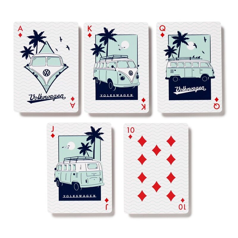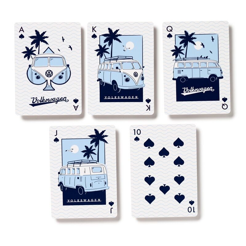 Talia kart do gry z motywem VW T1 Camper. Styl retro, wysoka jakość, idealna do podróży i kolekcji. Prezent dla fana vanlife i klasyki motoryzacji.