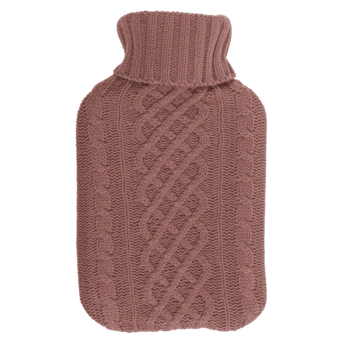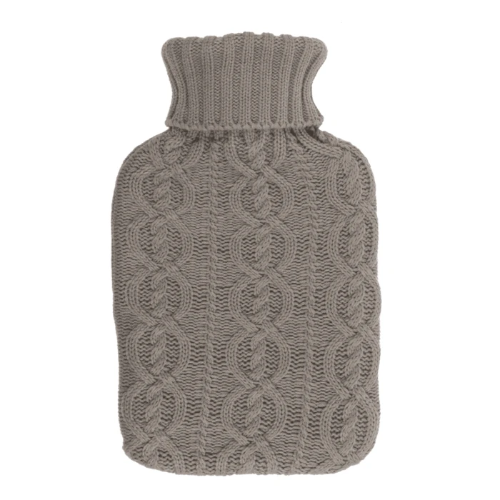 Termofor z dzianinowym pokrowcem w pleciony warkocz – ciepło i komfort