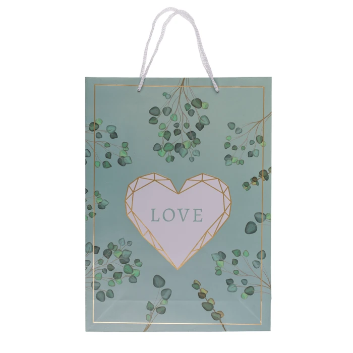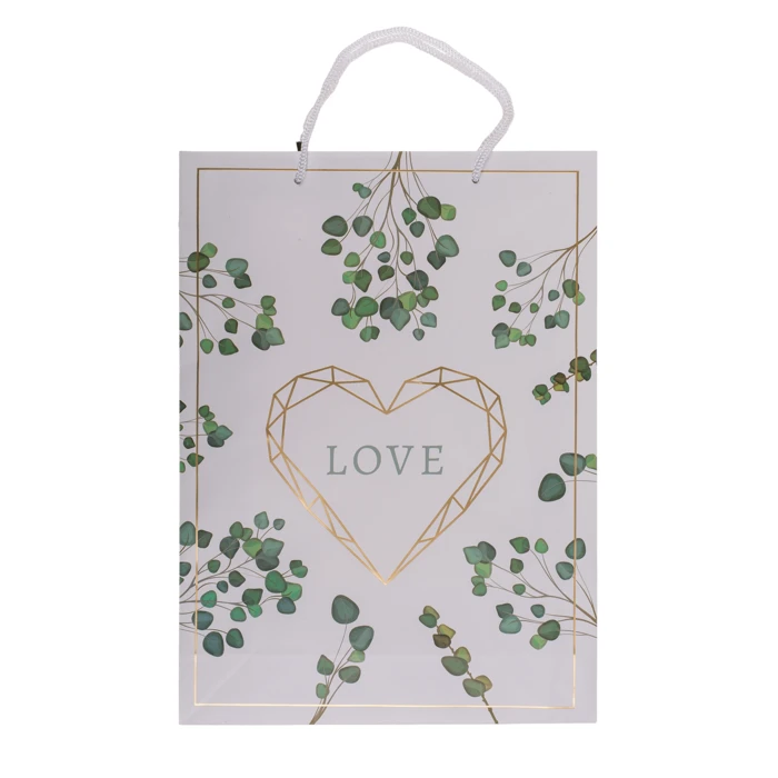 Torba prezentowa LOVE 25x8,5x34 cm biała zielona