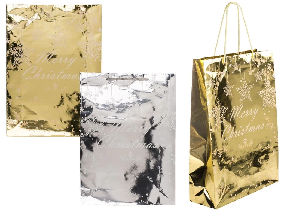 Torba prezentowa Merry Christmas 25x8, 5x34,5 cm błyszcząca mix kolorów