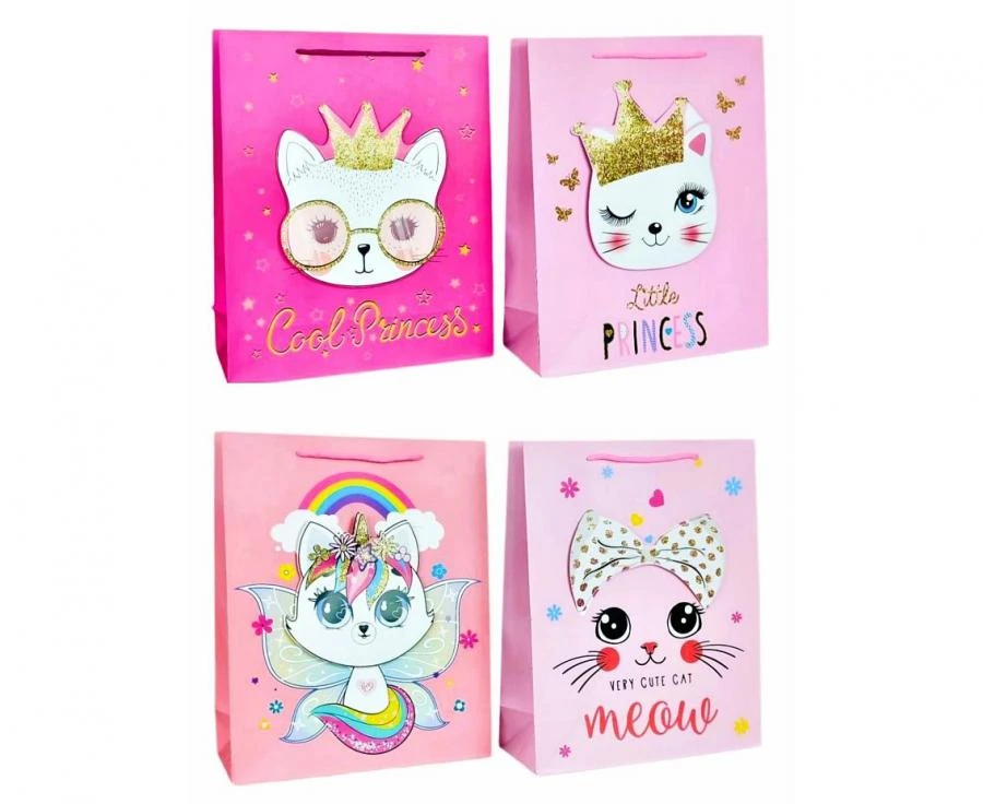 Torebka prezentowa z uroczym kotkiem w okularach to doskonały wybór na prezent dla dziewczynki. Pojemna i trwała, ułatwia efektowne pakowanie.