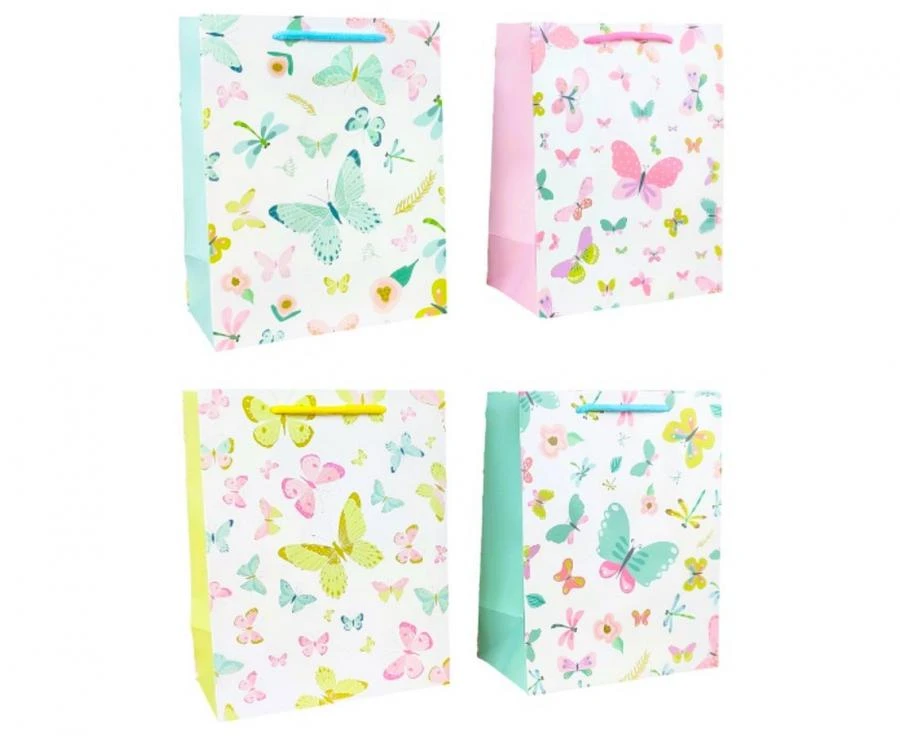 Torebka prezentowa z motylkami motyle Motylki 32x26x12 cm zestaw mix wzorów 12 szt