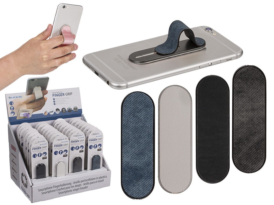 upuszczenia smartfonu. Uchwyt może również służyć jako podstawka. Prosta funkcja montażu - nie wymaga dodatkowych elementów pomocniczych. Klej utrzymujący uchwyt jest mocny, a jednocześnie nie zostawia śladów (uchwyt można zdemontować i zastosować na innym urządzeniu). Dostępny w czterech kolorach. Sprzedajemy jako mix kolorów. Wyśmienity i praktyczny gadżet dla każdego użytkownika smartfonów. Super pomysł na drobny upominek.