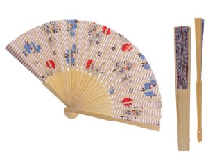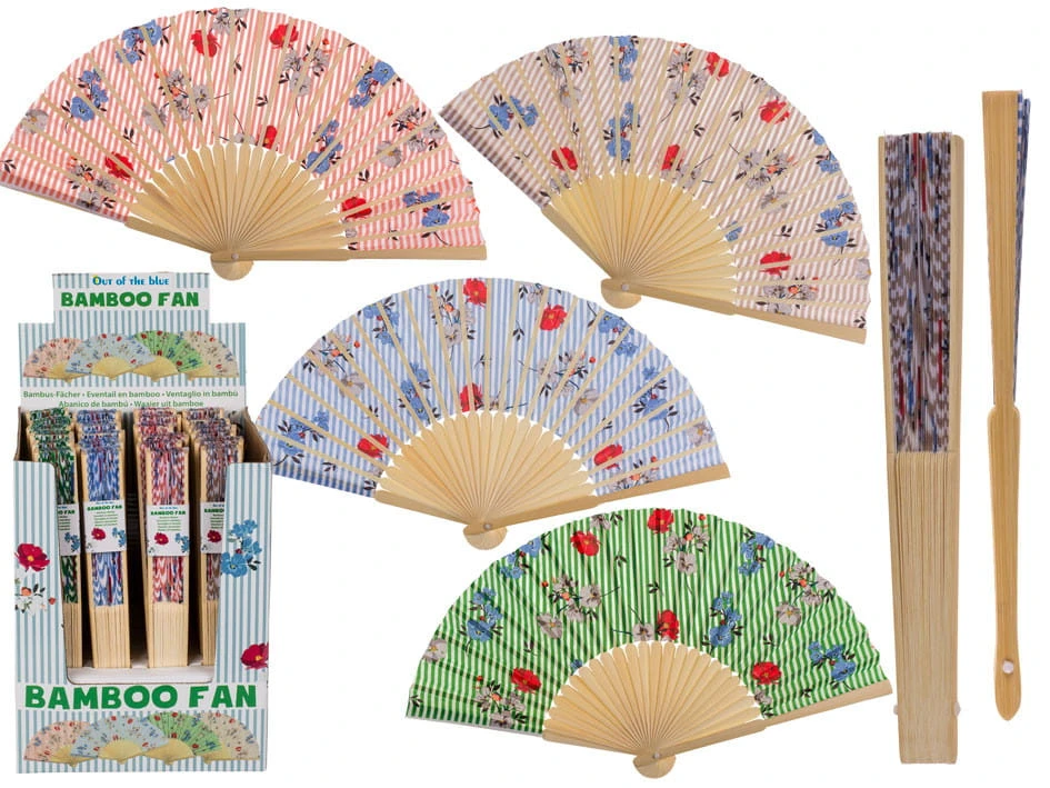 Bambusowy wachlarzyk z grafiką w orientalne kwiaty. Po rozłożeniu wachlarzyk osiąga ok. 37 cm. Dostępne są 4 kolory. Wysyłamy jako mix kolorów.