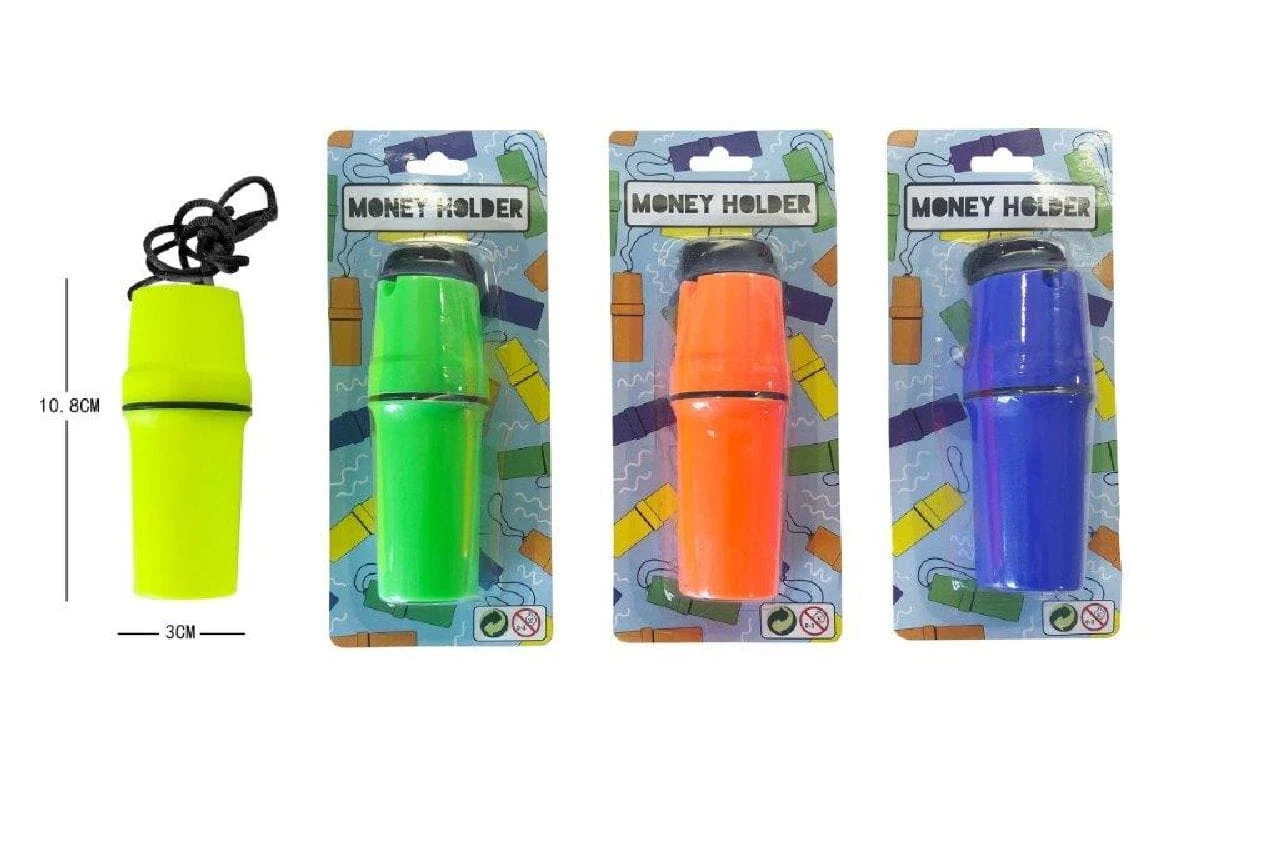 Zamykany pojemniczek na pieniądze, który nie przecieka, można go zabrać na basen, nad jezioro bez ryzyka że nie mamy gdzie włożyć gotówki. Dostępny w czterech kolorach. Sprzedajemy jako mix.