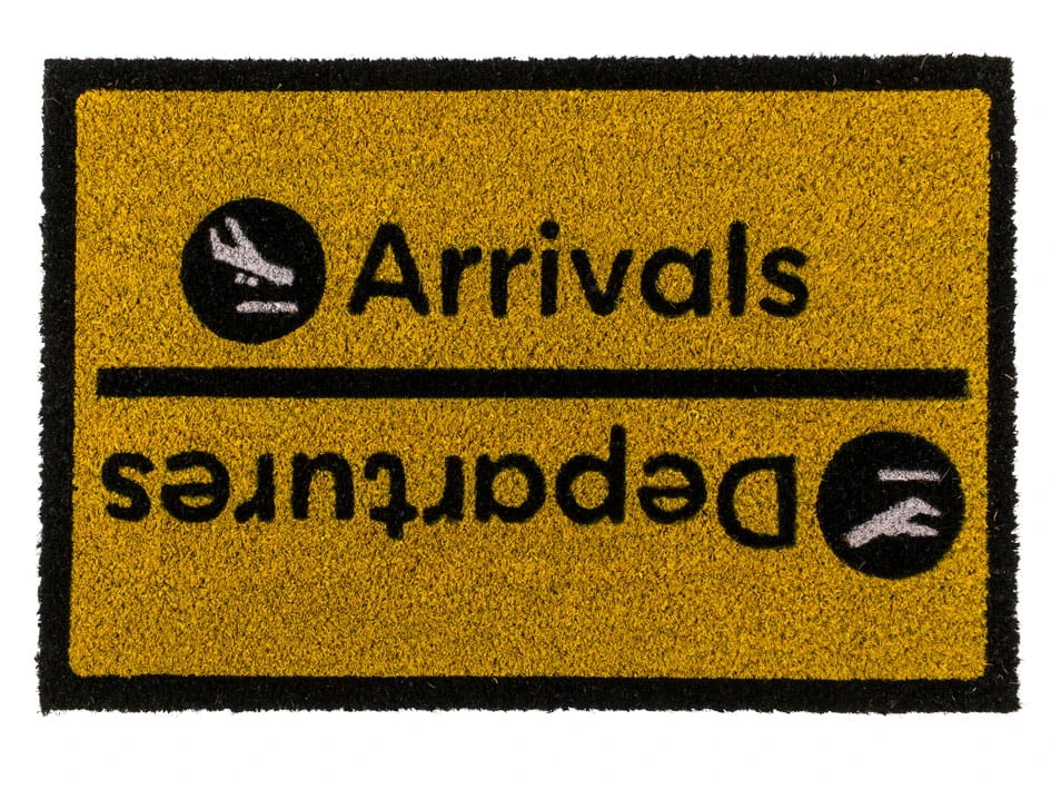 Wycieraczka Arrivals Departures pod drzwi do butów