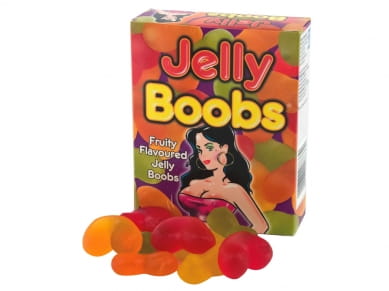Owocowe żelki w kształcie cycuszków. Żelki są świetnym pomysłem, aby urozmaicić menu np. wieczoru kawalerskiego. Mogą posłużyć również jako żartobliwy prezent.