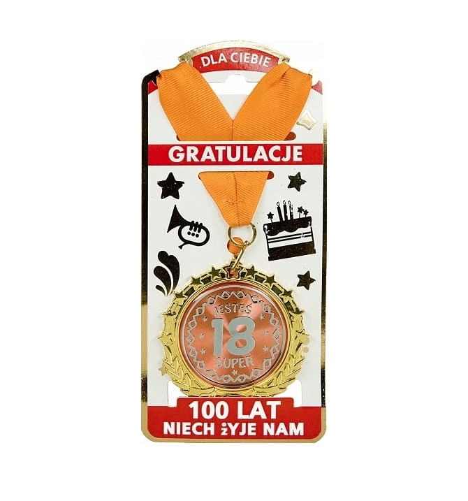ZŁOTY MEDAL metalowy Jesteś Super 18 URODZINY