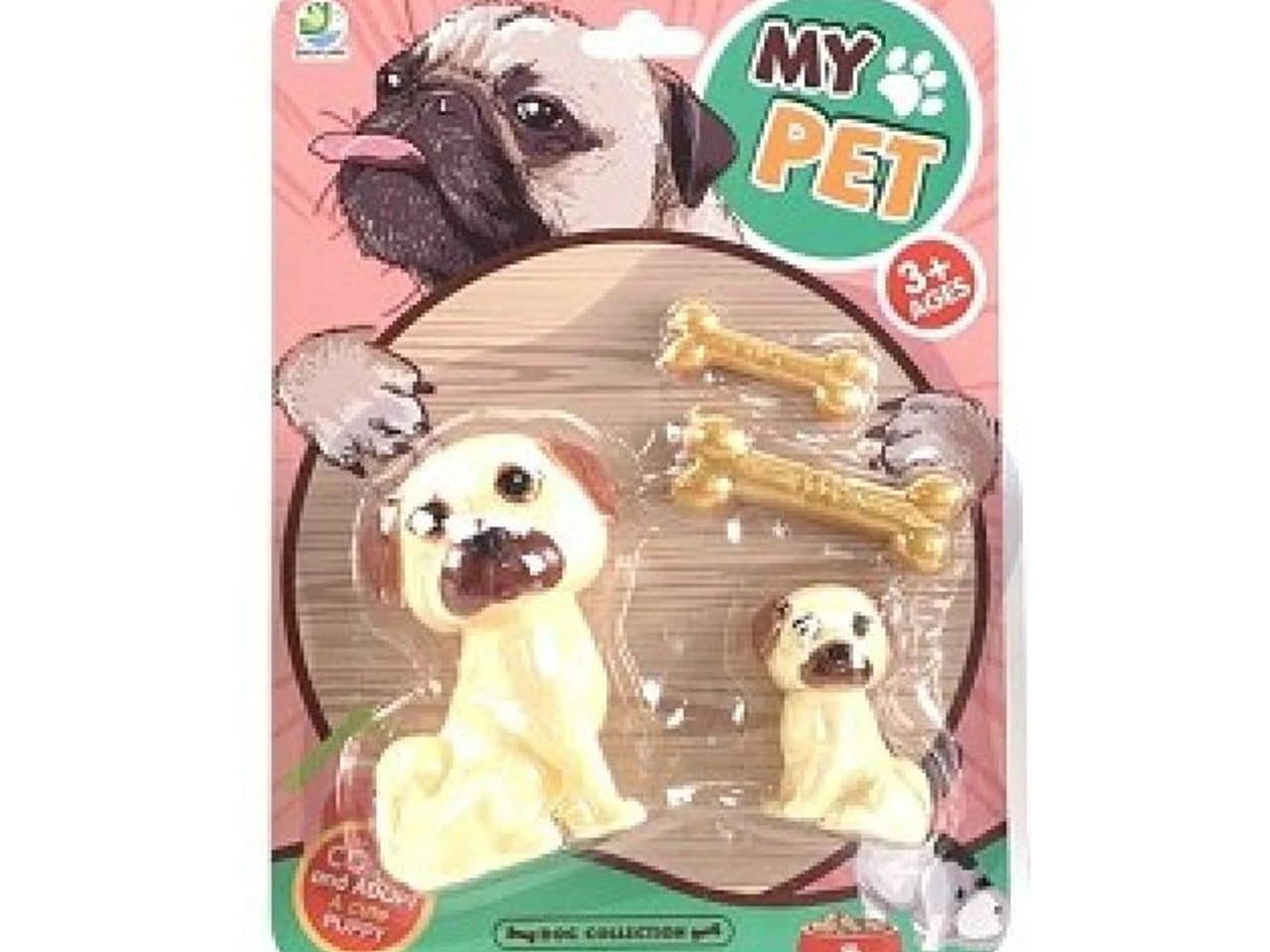 W zestawie znajduje się słodki piesek, szczeniaczek i dwie kości. Maluchy mogą opiekować się pieskami i wymyślać różne zabawy. To doskonała okazja, aby rozwijać empatię i odpowiedzialność wobec zwierząt.