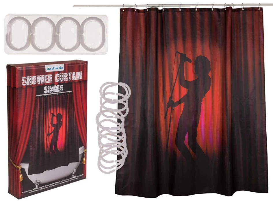 Wprowadź odrobinę muzycznego klimatu do swojej łazienki z zasłoną prysznicową z wizerunkiem wokalisty. Wyjątkowy design w postaci sylwetki piosenkarza sprawi, że każda kąpiel stanie się inspirującym momentem. Wykonana z trwałego poliestru, zasłona łączy w sobie funkcjonalność i estetykę. Dzięki 12 plastikowym haczykom, montaż jest szybki i prosty.
