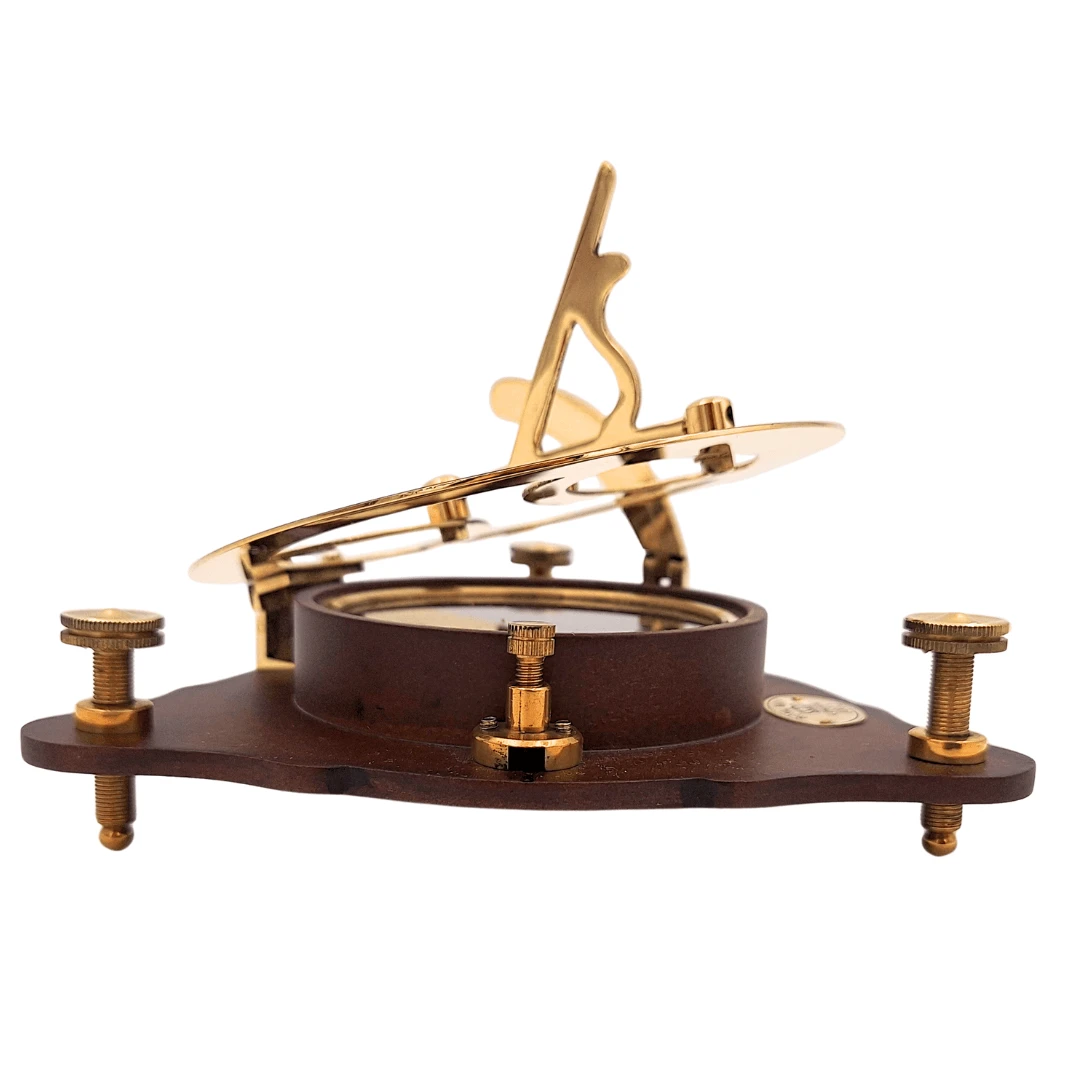 Zegar słoneczny z kompasem na drewnianej podstawie - prezent retro