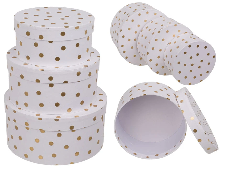 Zestaw 3 okrągłych pudełek w złote kropki Pojemnik