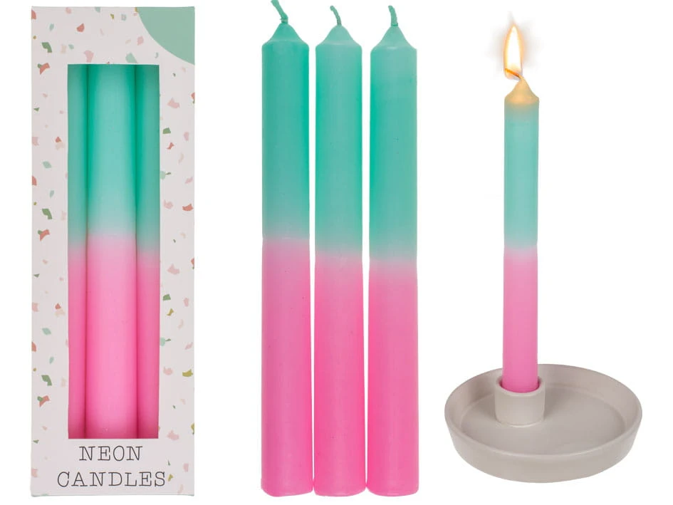 Zestaw 3 świec stołowych - różowy miętowy Świeczka