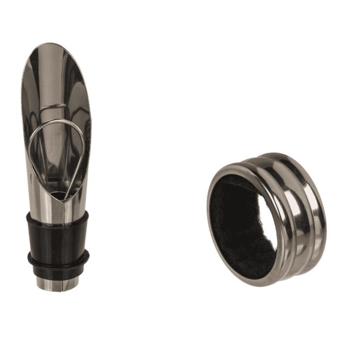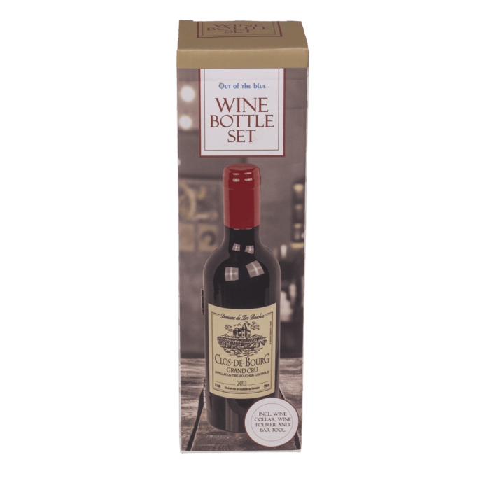 Ten stylowy komplet to must-have dla każdego miłośnika wina. Zamknięty w etui przypominającym butelkę, kryje w sobie trzy praktyczne akcesoria: otwieracz wielofunkcyjny, nalewak oraz obrączkę na butelkę, która zapobiega kapaniu. Dzięki nim serwowanie wina staje się wygodne, eleganckie i bezproblemowe.