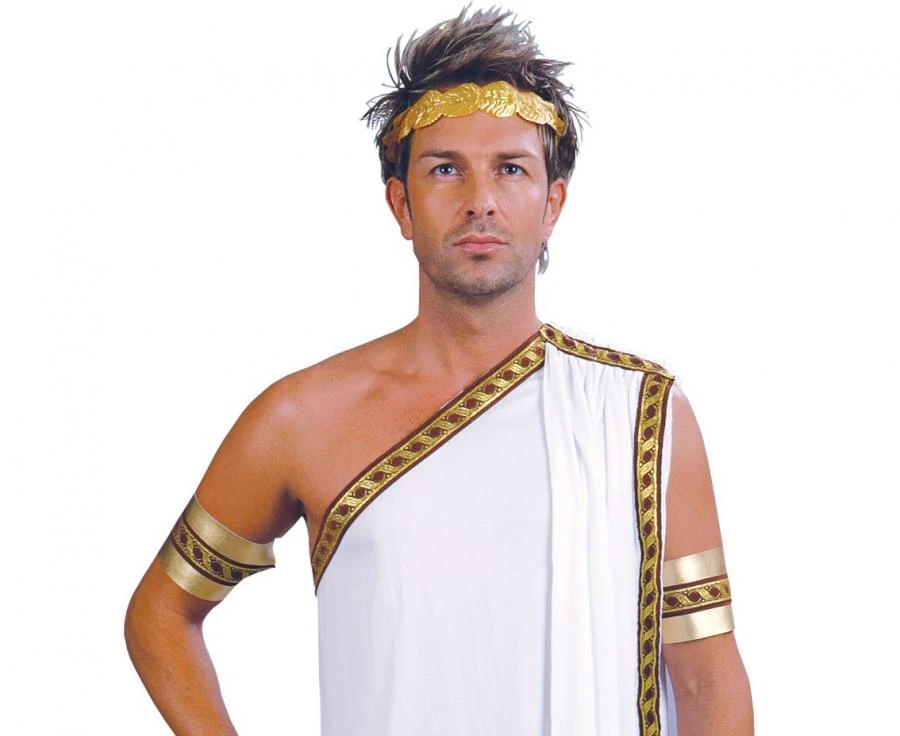 ✔ Toga – elegancka biała szata ze złotymi ornamentami,