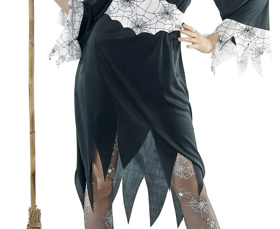 ✔ Sukienka – czarna z biało-szarymi detalami i wzorem pajęczyny, dodającym nieco magii,