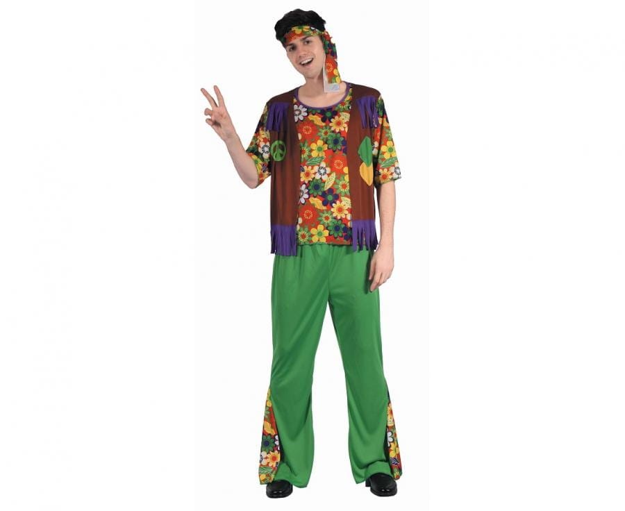 Strój Kolorowego Hipisa przenosi Cię do lat 60. i 70. XX wieku, kiedy styl hipisowski był symbolem wolności, miłości i radości. Bluzka ozdobiona kwiatowymi wzorami oraz intensywnie zielone spodnie doskonale oddają atmosferę tamtej epoki. Całość dopełnia charakterystyczna opaska, która idealnie pasuje do stylu hippisowskiego.