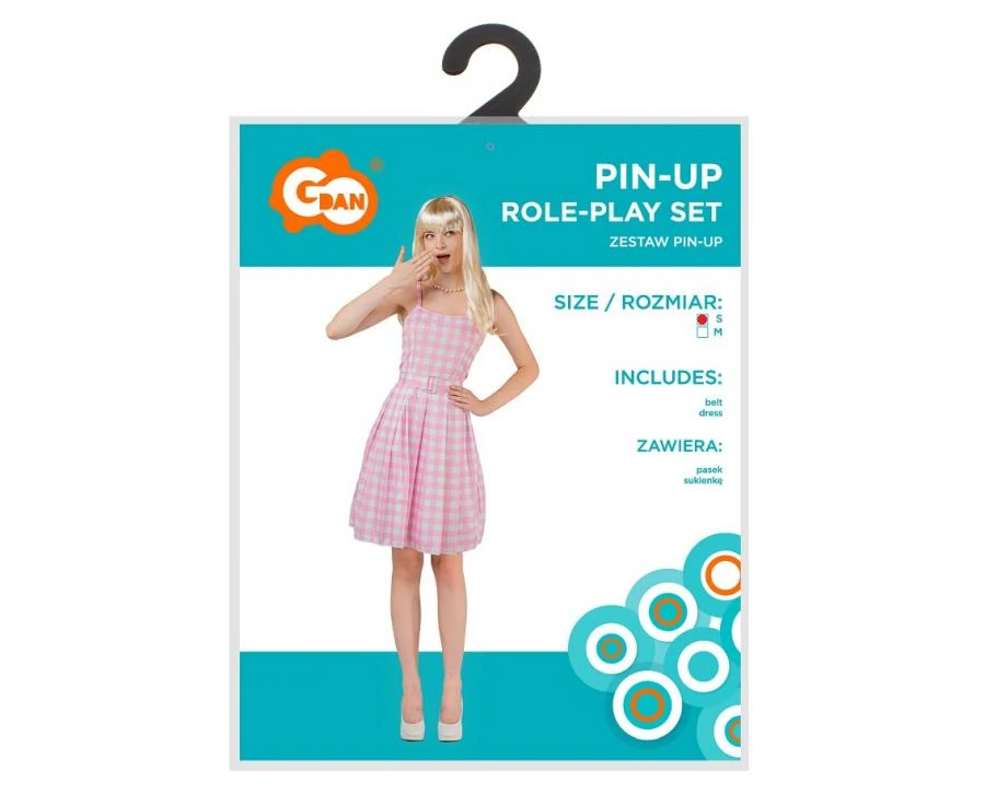Strój Pin-Up to klasyczny wybór dla kobiet, które pragną poczuć się jak ikona lat 50-tych. Sukienka z delikatnym wzorem w kratkę w odcieniach różu doskonale podkreśla sylwetkę, a pasek w talii nadaje charakteru całej stylizacji. Wykonana z lekkiego i przewiewnego materiału, sukienka zapewnia komfort noszenia, dzięki czemu jest idealnym rozwiązaniem na długie godziny zabawy i tańca.