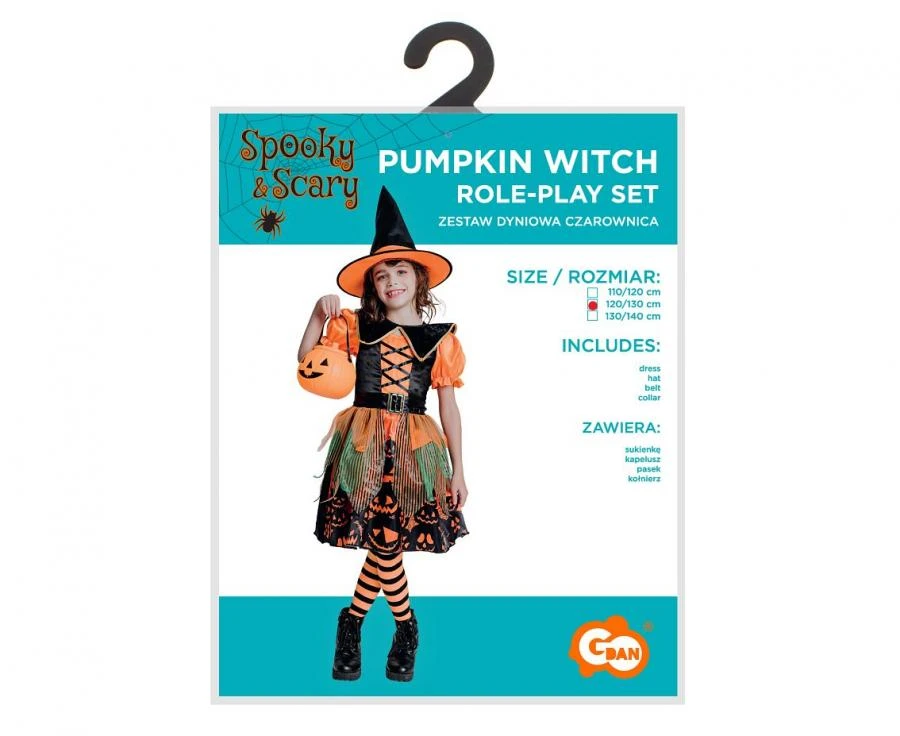 Zestaw dla dzieci Dyniowa Czarownica Przebranie Strój Kostium 120/130 cm