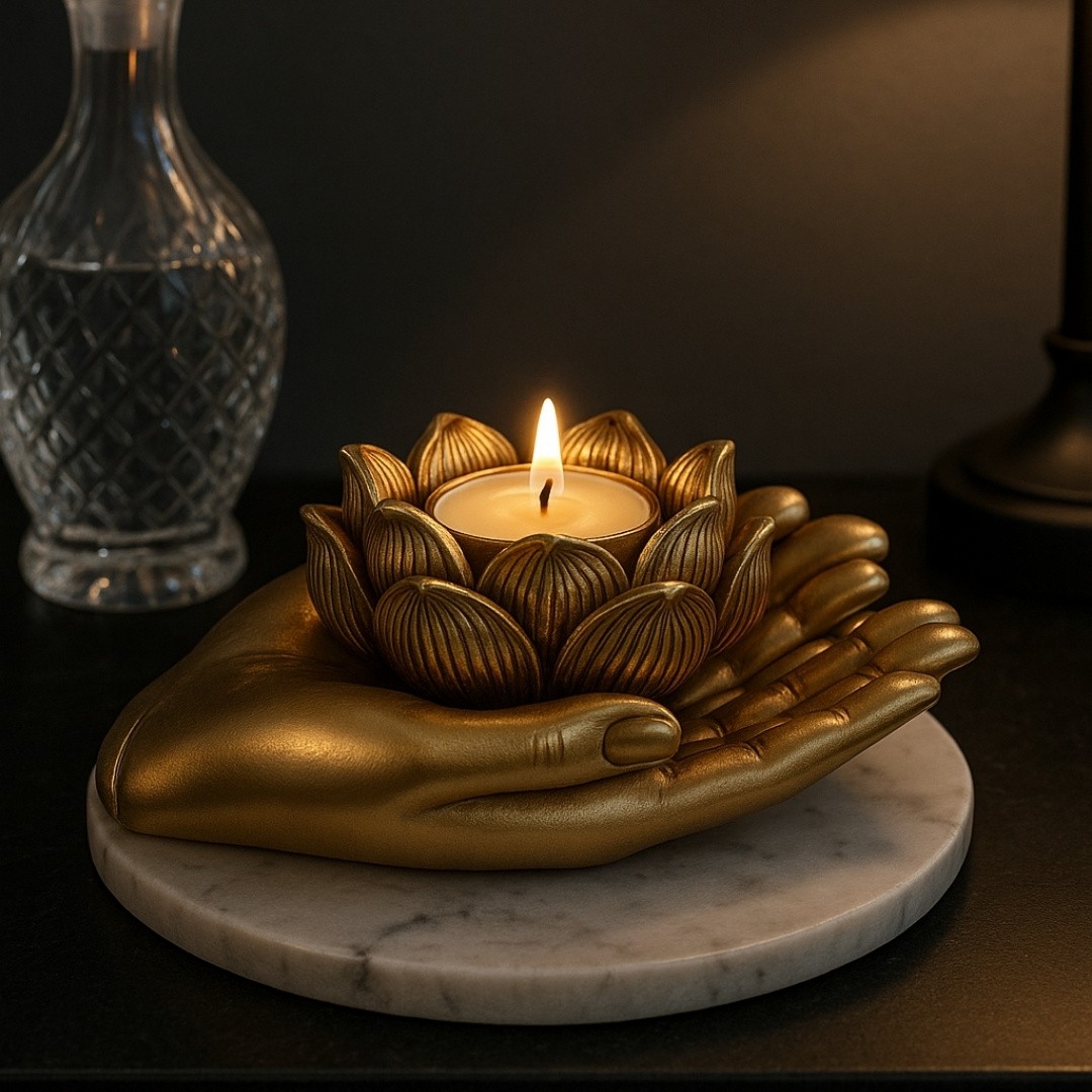 Stylowy świecznik w kształcie dłoni – symbol wsparcia i światła